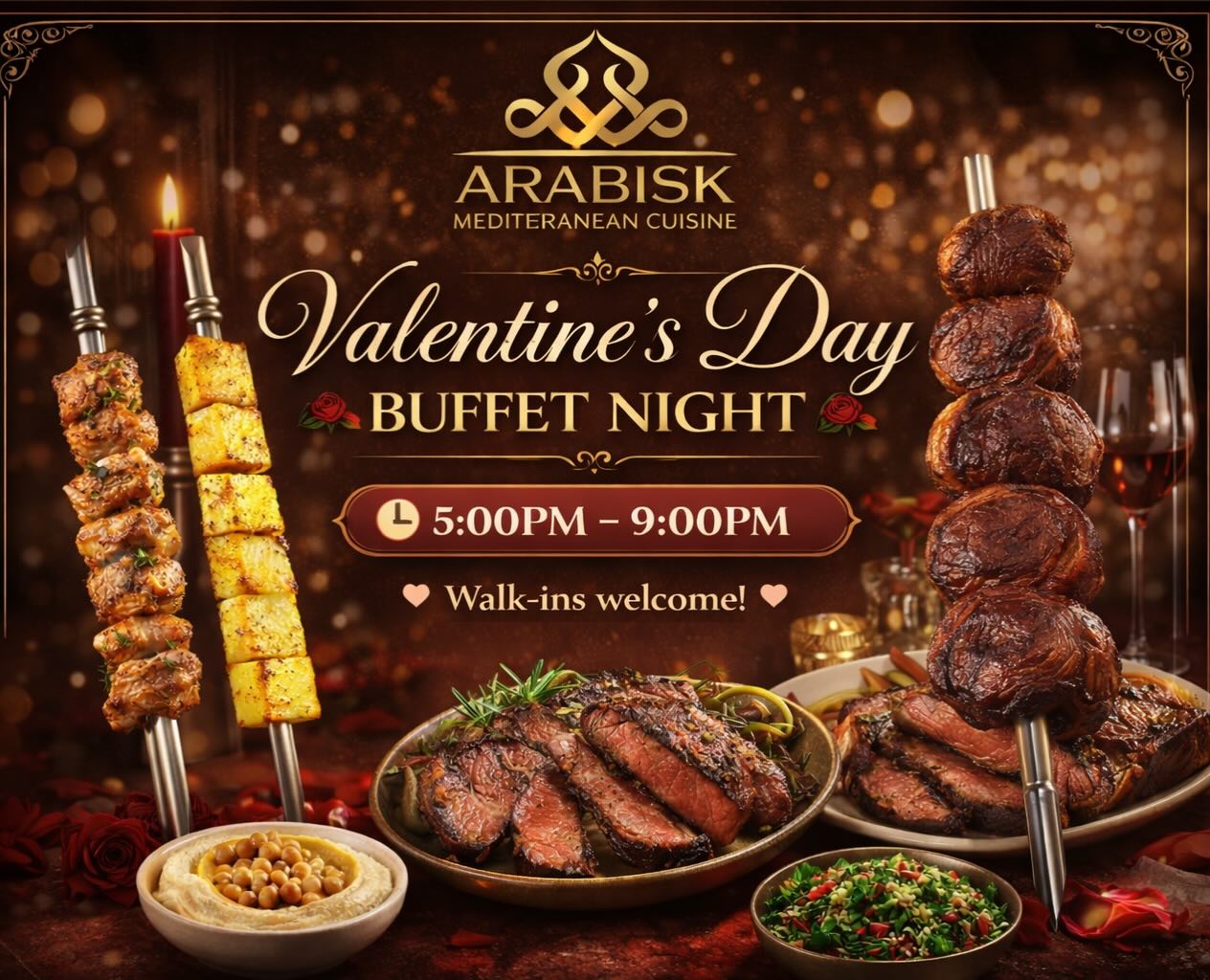Spend Valentine’s Day at Arabisk Mediterranean Cuisine  and enjoy a special buffet night filled with grilled skewers, fresh Mediterranean flavours, and a variety of guest favourites.  A perfect evening for great food, […]