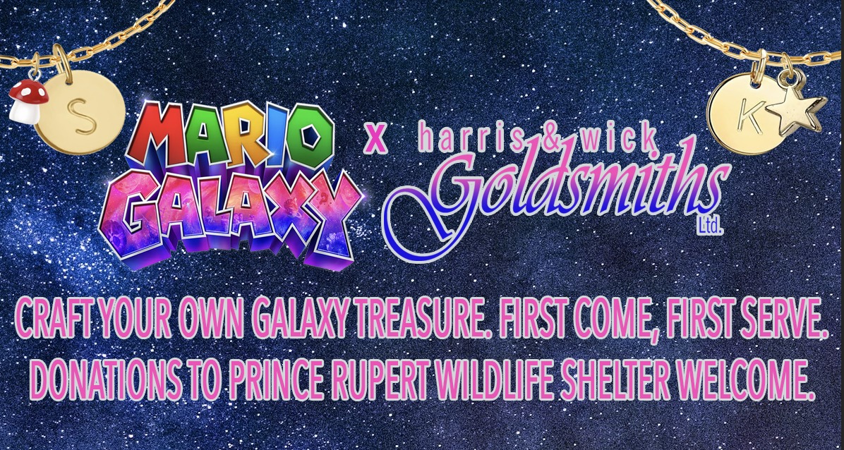 Celebrate the Mario Galaxy Movie with a hands-on jewellery experience for kids: design a gold-toned coin pendant with your initials, pick your favourite charm, and build your own necklace with help from our team. Entry by donation to the Wildlife Shelter. Harris & Wick Goldsmiths Ltd. 334 3rd Avenue West, Prince Rupert, BC, Canada, British […]