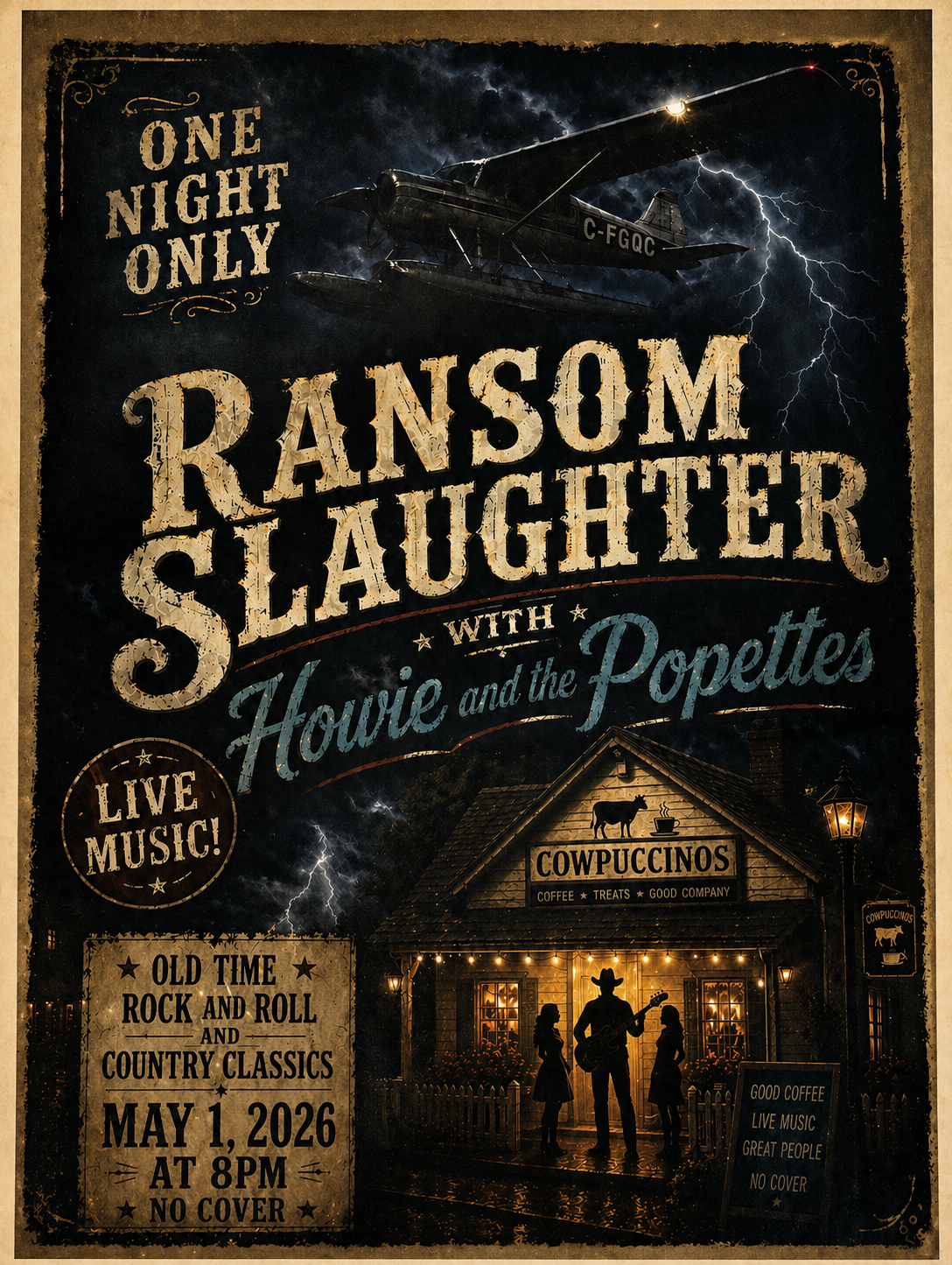 LIVE MUSIC AT COWPUCCINOS! FRIDAY MAY 1ST!! CLASSIC ROCK N ROLL AND COUNTRY FAVOURITES!! Good people, Great music. Guaranteed good time. No Cover. Doors open at 7, Music Starts at 8! Venue: COWPUCCINOS Organizer: COWPUCCINOS